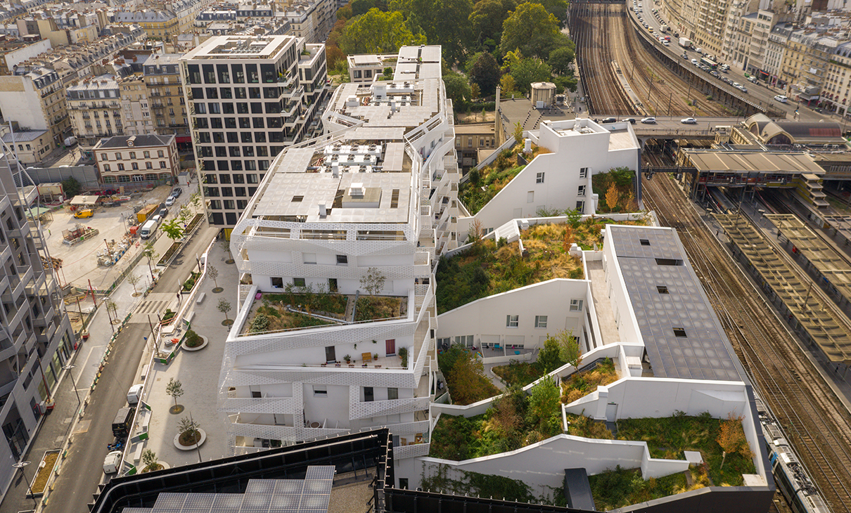 Première tour de logements à Paris depuis les années 70, la « Tour de la Biodiversité » accueille 18 étages de logements sociaux dotés de balcons filants en plein ciel !