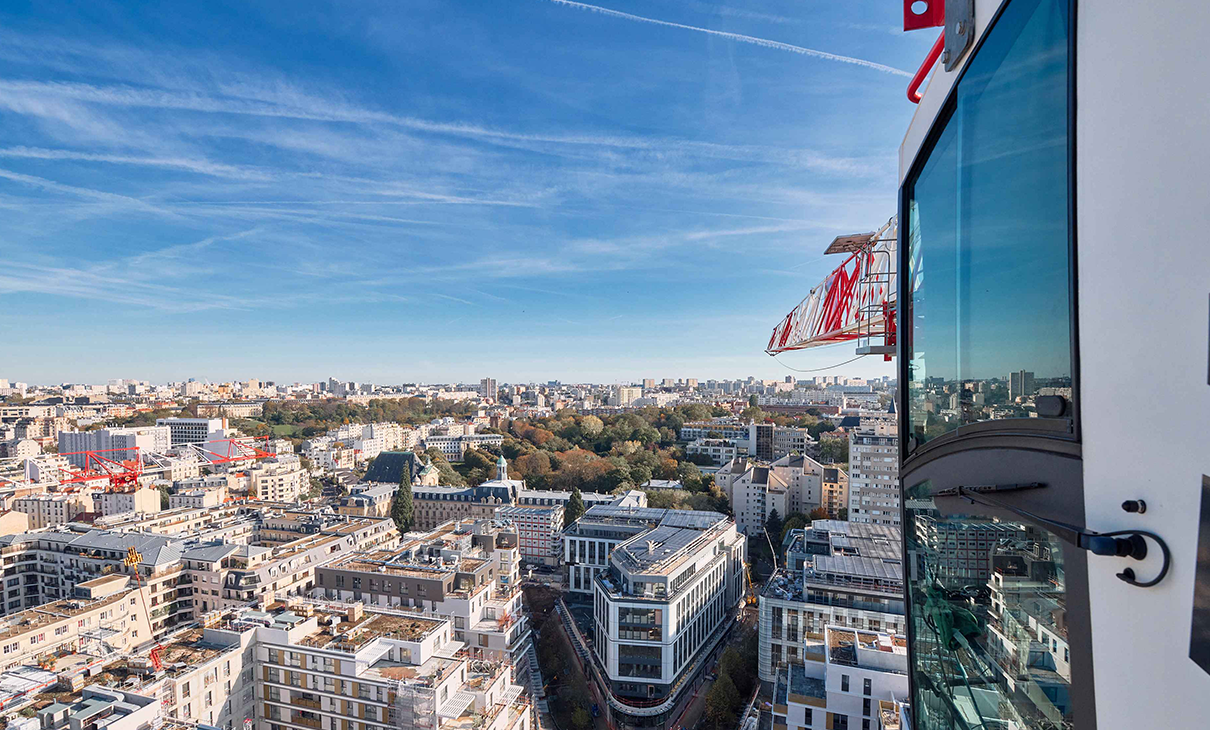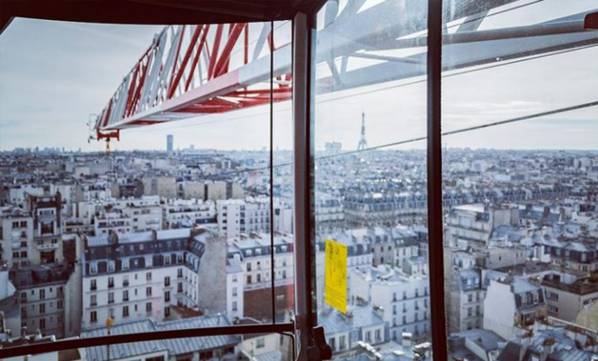 Et si vous preniez de la hauteur quelques instants ? Bienvenue au sommet de la grue, à l'intérieur de la cabine de notre grutier. Un point de vue inédit sur le chantier mais aussi une vue panoramique sur la ville de Paris et la Tour Eiffel ! Un endroit privilégié que nous partageons avec vous !