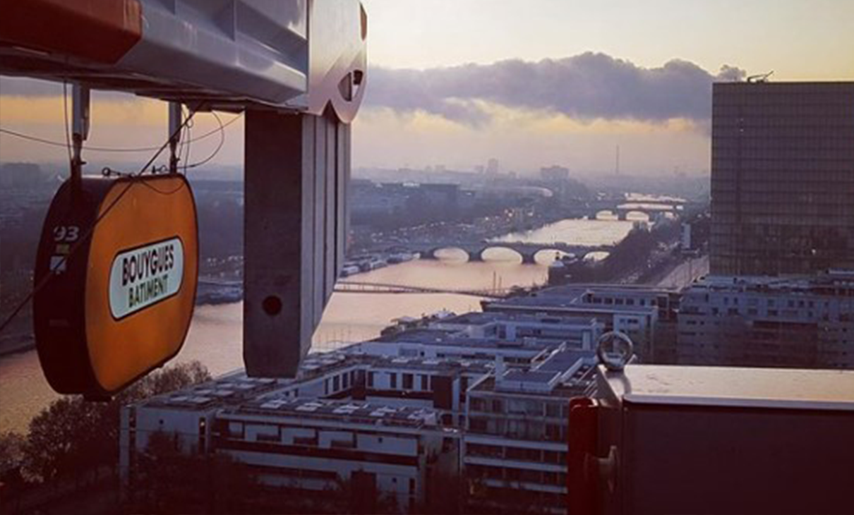 Nos équipes sont à pied d’œuvre sur leur chantier, même lorsqu’elles prennent de la hauteur depuis leur grue ! Notre grutier nous fait profiter ici, d’une vue imprenable sur Paris et sur le Tribunal de Paris, opération réalisée il y a quelques années par nos équipes.