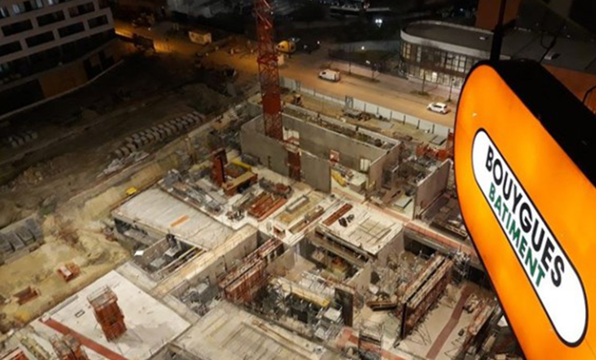 Retour sur le chantier du Grand Equipement Documentaire du Campus Condorcet à Aubervilliers vu de nuit grâce à ce cliché réalisé par l’un de nos grutiers.