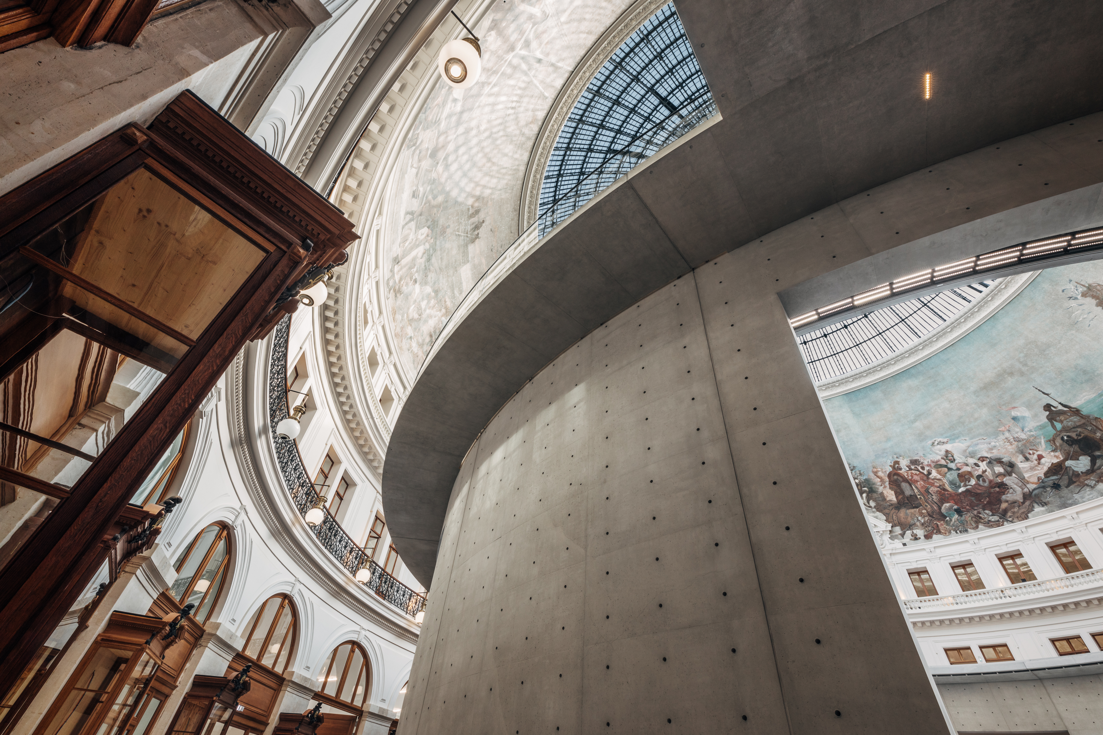 Derrière les murs historiquement bâtis en 1766 par Nicolas le Camus de Mézières, nos équipes ont relevé un défi majeur : celui d’avoir érigé un cylindre de béton de plus de 9 mètres de haut et 100 mètres de circonférence au cœur de la rotonde du bâtiment. Pour accueillir le cylindre en béton et l’ensemble des œuvres d’art, la structure de l’édifice a été renforcée jusqu’à ses fondations. Les planchers, qui pouvaient jadis porter 250 kg par mètre carré, supportent désormais 700 kg et jusqu’à 1 000 kg par endroits.