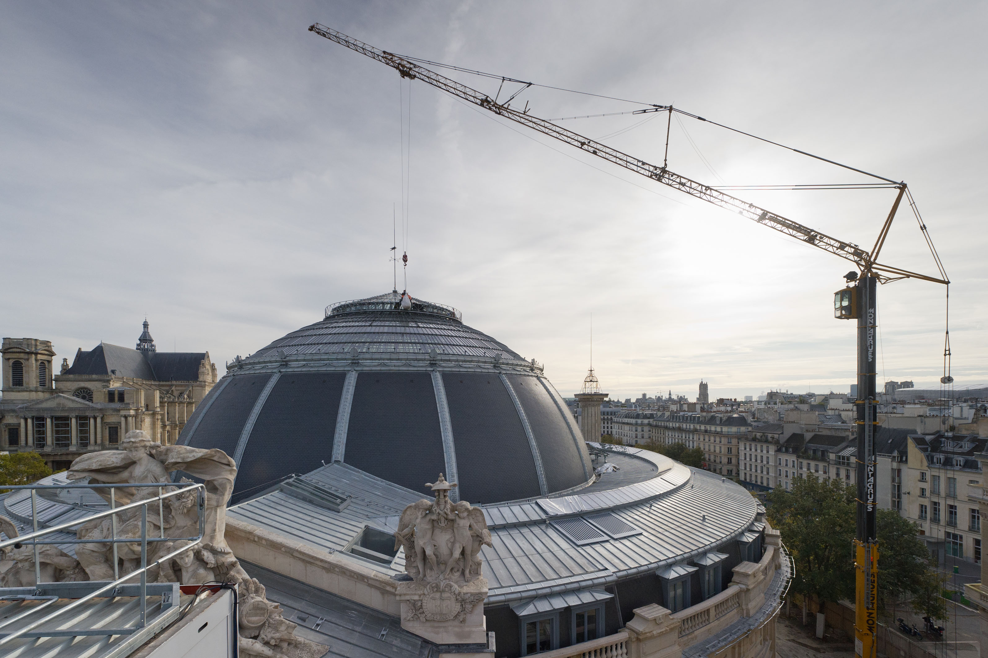 Dans un quartier bouillonnant du 1er arrondissement de Paris, nos équipes ont contribué à faire renaître cet édifice, livré au printemps dernier : "Entre restauration d’un bâtiment entièrement inscrit à l’inventaire des Monuments historiques, renforcement des planchers, la pose de 600 tonnes d’échafaudages, la restauration des 44 000 ardoises du dôme et les mises aux normes du bâtiment pour répondre aux enjeux environnementaux, ce sont 350 personnes en pointe sur le chantier pendant 34 mois qui œuvré pour réaliser ces prouesses techniques" nous précise Ange Petenzi, directeur travaux chez Bouygues Bâtiment Ile-de-France Rénovation Privée.