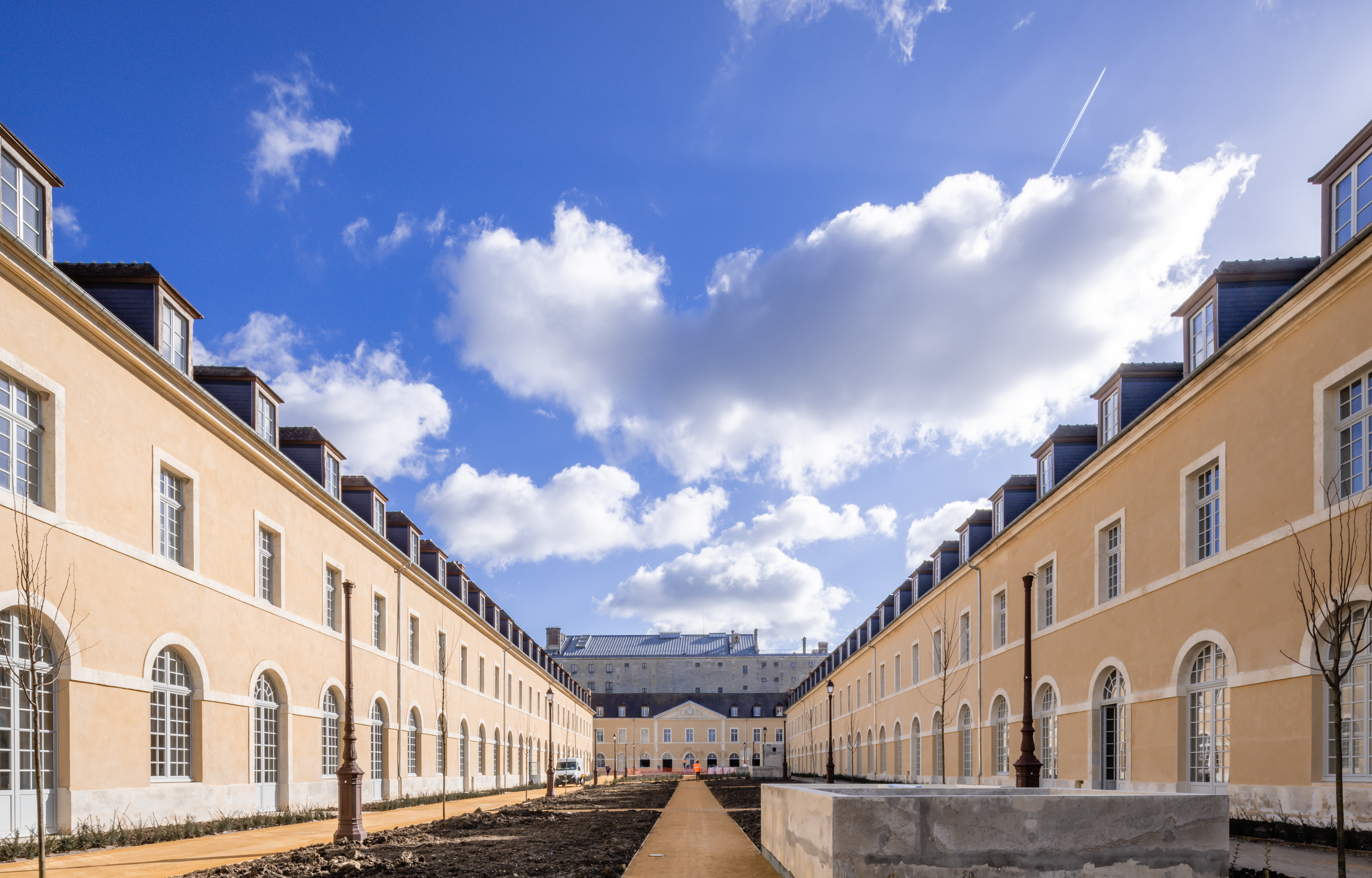 “Cette opération a consisté à restaurer et mettre en valeur cet ensemble militaire d’exception, créé par Louis-Philippe entre 1843 et 1848 dans les jardins de l’ancien couvent des Carmélites de Compiègne, tout en l’ouvrant sur la ville de Compiègne via la création de nouvelles traversées piétonnes reliant le site de l’École d’Etat-Major au centre-ville. Il s’agit d’un véritable nouveau morceau du centre-ville de Compiègne où vous trouverez désormais un programme mixte, auquel s’ajoute un jardin réaménagé”