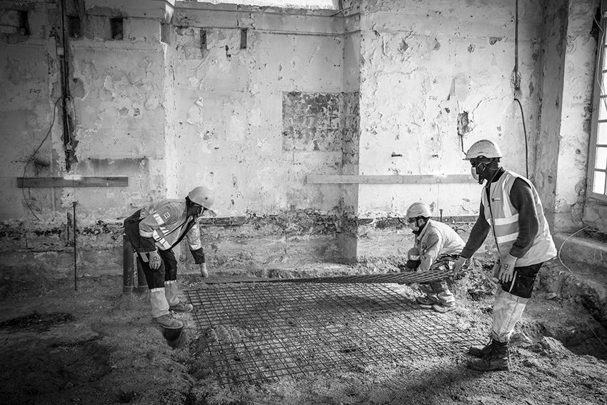 Lors des travaux, ce lieu chargé d’histoire a été quasiment démoli dans son intérieur, des chambres à l’ancien lieu de vie des militaires, en passant par les salles de conférence et de classe pour finir par les escaliers monumentaux.