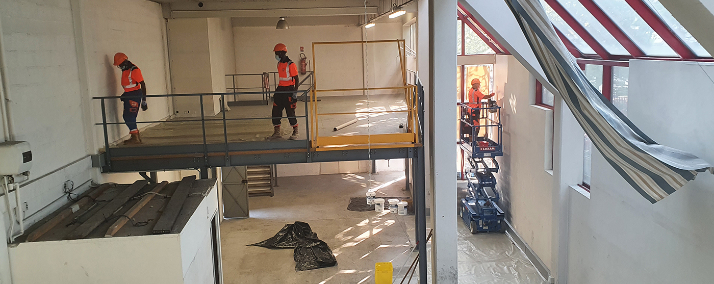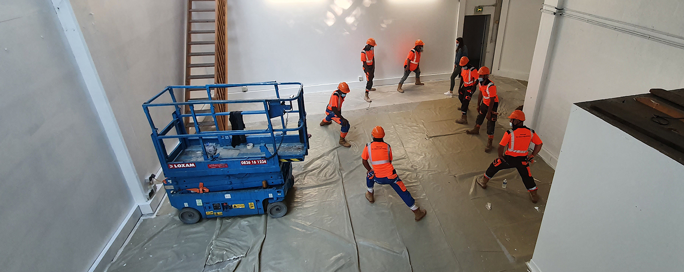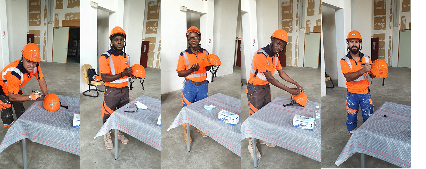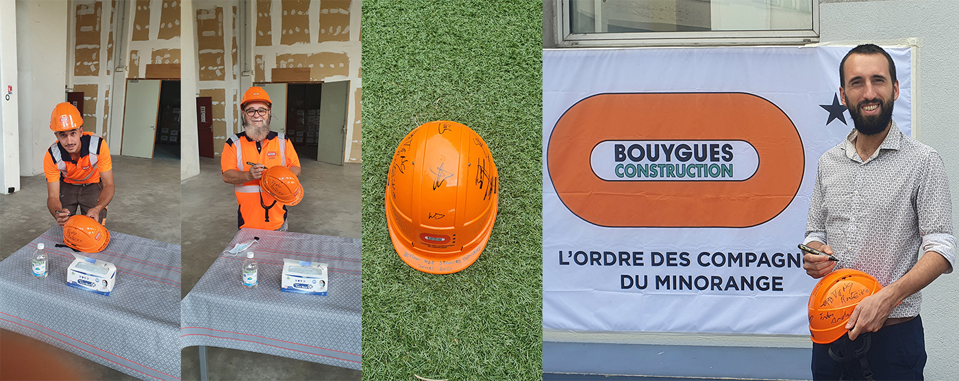 Cette action, portée par l’Ordre des Compagnons du Minorange de Bouygues Bâtiment Ile-de-France et Bouygues Construction Matériel, a rassemblé plusieurs personnes engagées individuellement et s’est réalisée en collaboration avec les équipes de Bouygues Bâtiment Ile-de-France – Construction Privée. Encadrement, Maîtrise, Compagnons : tous se sont mobilisés. Les chefs de chantier ont prêté leur nacelle et fourni le PVC. Et nos partenaires aussi ont joué le jeu ! Saga-Plus nous a fourni généreusement la peinture et Bouygues Construction Matériel les rouleaux de peinture.