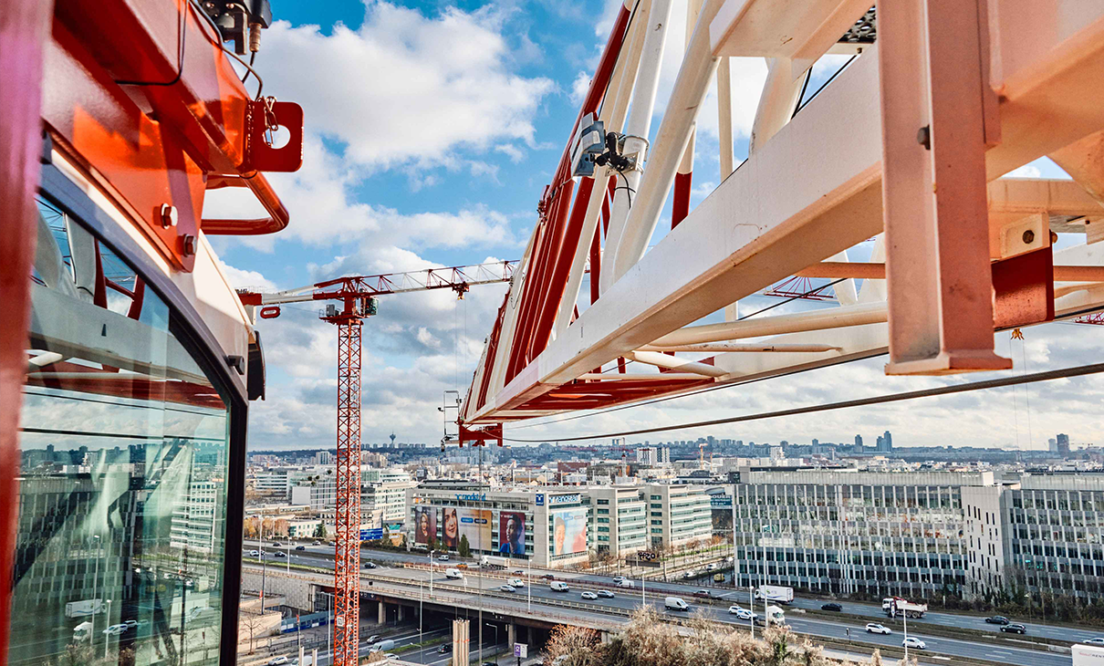 Et si vous preniez de la hauteur quelques instants ? Bienvenue au sommet de la grue, à l'intérieur de la cabine de notre grutier. Un point de vue inédit sur le chantier mais aussi une vue panoramique sur la ville de Paris et la Tour Eiffel ! Un endroit privilégié que nous partageons avec vous !
