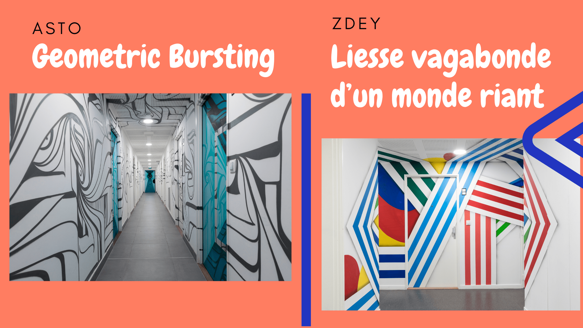 La résidence pour étudiants et jeunes chercheurs Ambroise-Croizat à Villejuif compte 380 studios répartis sur 7 étages. Chaque artiste a investi un niveau avec pour unique contrainte un rendu pictural en anamorphose. Couloirs, ascenseurs, plafonds, 2 500 m² ont ainsi été investis en 2018 par Asto, Astro, Olivia de Bona, Théo Lopez et Zdey. Le projet artistique global a été conçu et coordonné par Urban Art Agency