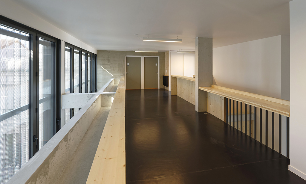 Dans une perspective de rendre l’habitat urbain plus nourricier, la toiture du bâtiment est dotée d’une serre agricole autonome et des jardinières intérieures se trouvent dans les duplex.