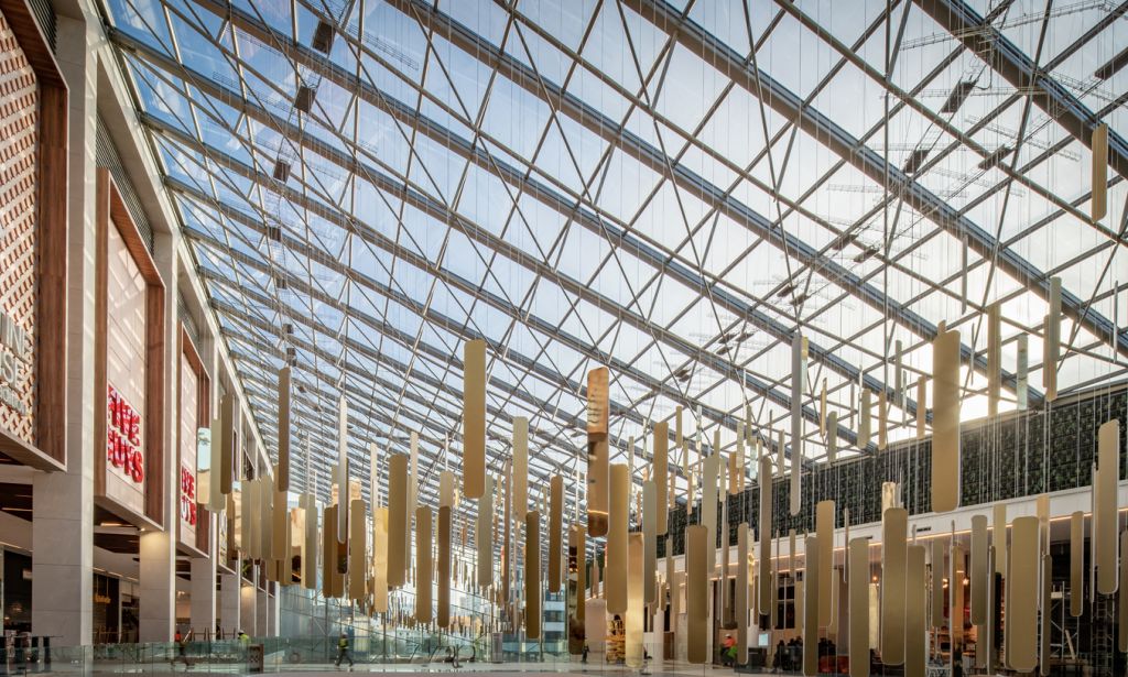 Couverte sous une verrière lumineuse de plus 2 100 m², l’extension du centre commercial Créteil Soleil (94) permet d’étendre le centre commercial existant en assurant une liaison depuis l’entrée principale du centre (la porte 23) jusqu’aux transports urbains. Cet espace permet ainsi l’accueil et transit des 20 millions de visiteurs annuels.